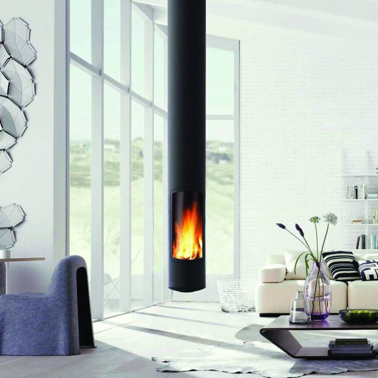 Description : slimfocus, la cheminée fermée suspendue, fixe ou rotative, centrale ou murale. Élégante et épurée, la cheminée Slimfocus se définit comme un périscope du feu. Ce modèle primé au design contemporain est particulièrement adapté aux maisons à haute performance énergétique. Dotée d’innovations technologiques, elle offre un confort de vie inégalé. Facile à intégrer au quotidien, la cheminée Slimfocus offre de nombreuses possibilités d’installation. Suspendue à l’extrémité d’un long tube métallique noir avec un foyer fermé fixe ou pivotant, elle peut également se transformer en une longue et élégante cheminée allant du sol au plafond.
